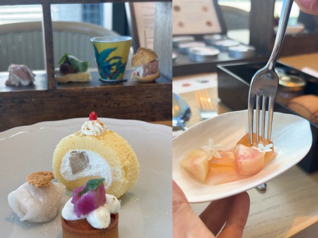 2025年9月1日(月)〜10月31日(金)は「栗とさつまいものアフタヌーンティー」に変更になります。桃が味わえるのはあと少しです。