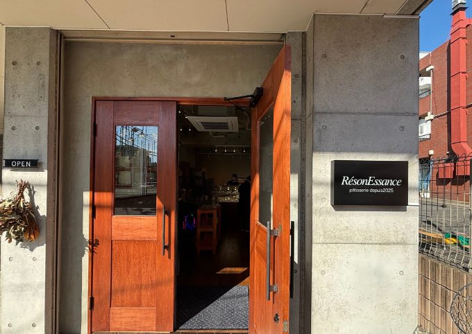 ResonEssance(レゾネサンス)は、2025年にオープンした、ご夫婦で営まれているケーキ屋さん。奥行きのある店内で、入口付近にはクッキーなどの焼き菓子がずらりと並び、かごに入れて選ぶスタイル。