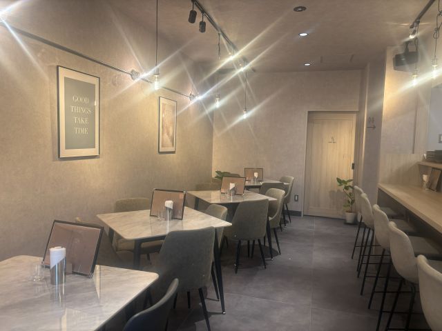 店内は明るい基調のインテリアで統一され、清潔感のある落ち着いた雰囲気。カウンター席も用意されているため、女性ひとりでも入りやすく、ランチはもちろん、仕事帰りのディナーにも使いやすい空間です。