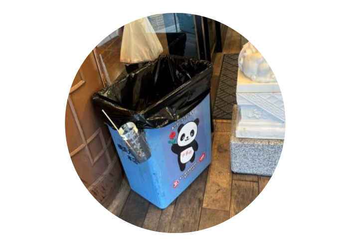中華街で見かけるパンダのマークのゴミ箱は、同じ柄に見えますが、それぞれのお店が設置しているゴミ箱です。