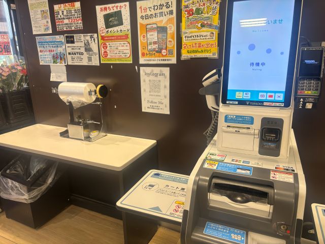 藤が丘店では、有人レジで会計後、精算は各自で機械を操作する方式を採用していました。