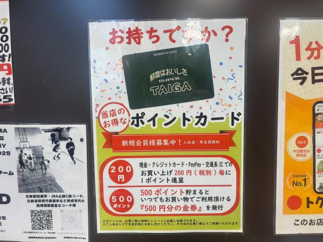 TAIGA独自のポイントカード制度もあり、使えば使うほどおトクな仕組みになっています。